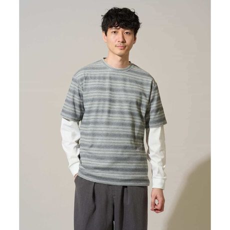 ワッフル組織のランダムボーダー素材を使用したカットソー。