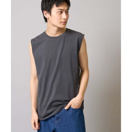 きれいめ天竺素材を使用して着心地抜群のベーシックなノースリーブカットソー。