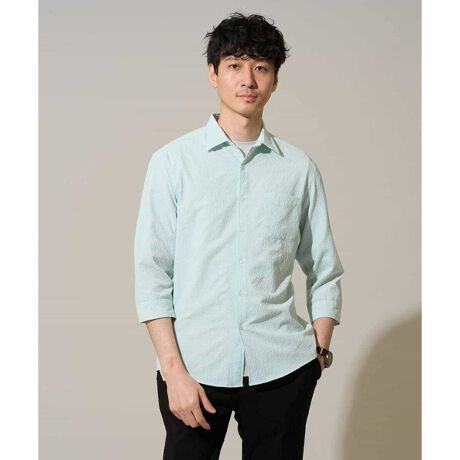 ◆薄手のシアサッカー素材を使用した初夏から盛夏まで着用できる七分袖シャツ◆