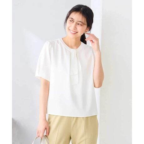 ボウタイ×チャーム付きブラウス。