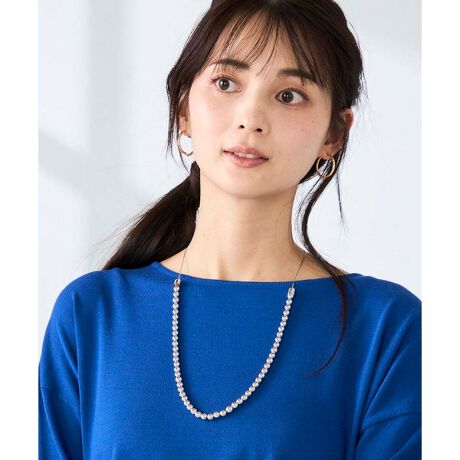 シンプルなニットやカットソーに合わせるだけで、首元にさりげない華やぎをプラスできます。