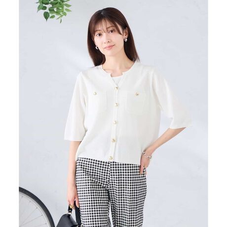 さらっとタッチの程良い風合い感が時季にぴったりなジャケット見えのカーディガン。