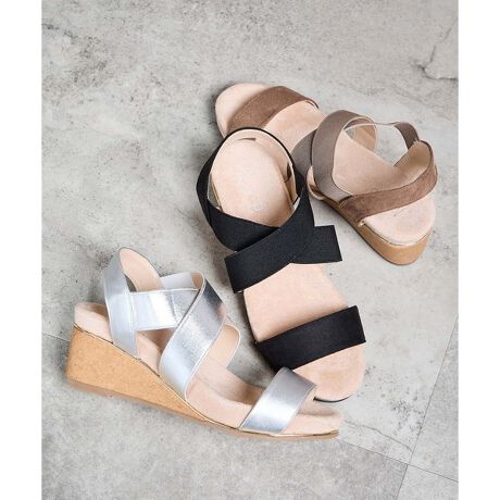 ウェッジヒールとクロスゴムで安定感をキープしてくれます。