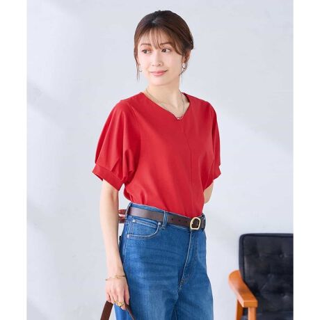Vネックゆったりスリーブカットソー