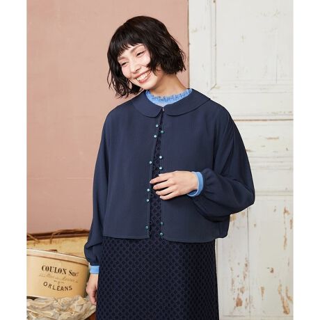 シンプルながらもボタンが目を惹くブラウス。ドルマンスリーブで身幅にゆとりを持たせたリラクシーなシルエットです。フラットカラーの襟付きのデザインやふんわりとした袖が女性らしい雰囲気を後押し。ショート丈のジャケットライクなデザインで、羽織としても活躍します。ジグザグと付けたボタンにも注目◎