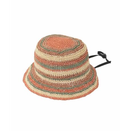 軽やかなペーパー素材の糸をカラフルにボーダー上に織り上げたバケットハット。ニュアンスあるカラーリングとボーダー配色がスタイリングに柔らかいアクセントを加えます。スベリ部分はベルクロテープ仕様でサイズ調節も出来、ソフトワイヤー入りのプリムエッジが程よく形をキープ。取り外し可能なストラップ付きでカジュアルに合わせていただけるトレンド感あるお作りです。涼しげで夏の日除けにぴったりです。