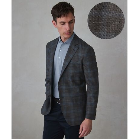 REDAのウール・シルク・リネン混紡サマージャケット生地。他のヨーロッパ生地と比較して軽量でありながら、イタリアらしい上品な光沢と繊細な柄表現が際立ちます。シルクの滑らかさとリネンの清涼感が、夏場の快適性と洗練されたスタイルを両立させた一着です。