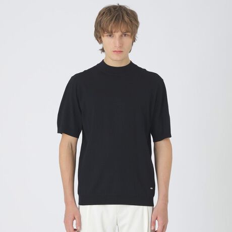 スッキリとしたシルエットに仕上げ、衿はやや高めのモックネックを採用したニットTシャツ。オトナで上品な見映えはスーツやジャケットのインナーとしても活躍します。オンオフどちらでも対応でき、春から秋まで3シーズン着用できるスマートなデザインのニットです。