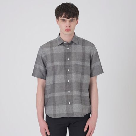オリジナルのカラミ織り素材を使用した半袖シャツ。大人っぽいシャープなシルエットが特徴で、合わせるアイテムを選ばない着まわしのきく一着です。
