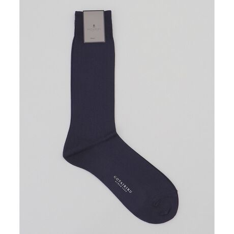 ズレ防止のため履き口の裏糸にはライン状にウレタン糸を配列。通常の糸使いよりも数段ふくらはぎからのズレ落ちを防ぎます。地面に水平の足に対して脚は垂直に生えているため、ソックスを履くと前足首に表地がたまってしまいがちです。 そこで前足首部分だけ度目を詰めて距離を縮め、かかとの丸み(ヒールカップ)に奥行きを持たせて改良しています。結果、普段の足首の角度に近い形状になります。まさにドレスソックスとして必要な見た目と機能性を全て兼ね備えた逸品です。