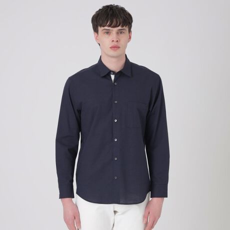 下前立てとカフス裏にクレストブリッジチェック柄をあしらったベーシックシャツ。インナーとしてはもちろん、羽織りとしても活躍する一着。衿型はシンプルなレギュラーカラーで、ややゆったりとしたトレンド感のあるリラックスフィットを採用しています。