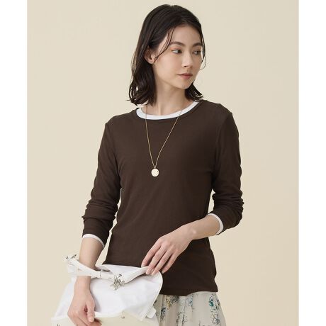 透け感で遊ぶオシャレ見えシアートップス■デザインレイヤードスタイルに欠かせないシアーインナーです。あえてシアー感の強い繊細な素材を使用することで、重ねる色によって表情が変わるのが魅力です。2色をレイヤードしていただくと透け感がより引き立ち、スタイリングに奥行きが生まれます。1枚で着ていただく際は、キャミソールなどを合わせることで、上品なシアーアイテムとして活躍します。※モデル画像は、色違いを重ねて着用しています。■素材細番手の強撚糸を使用したコットンフライスです。ガーゼのような透け感とさらりとしたタッチが特徴になります。