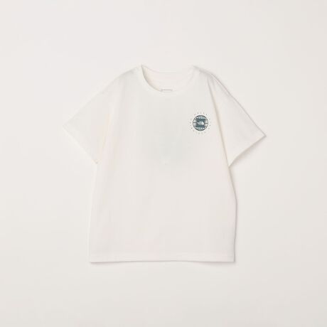 地球儀とスクエアのロゴを組み合わせたプリントを背面に大きくあしらった、元気いっぱいなキッズ用半袖Tシャツ