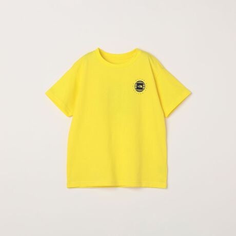 地球儀とスクエアのロゴを組み合わせたプリントを背面に大きくあしらった、元気いっぱいなキッズ用半袖Tシャツ