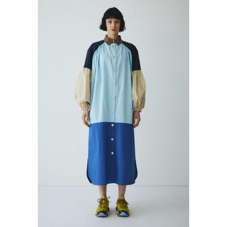 カラーブロックを楽しめるHeRINらしい配色のシャツワンピース大胆な切り替えで目を引くロングワンピースです。ゆったりとしたシルエットで身体のラインを拾いません。1枚で主役に。前を開けて羽織としても○カラーブロックドレス[注意事項] ※画像の商品はサンプルです。実際の商品と仕様、加工が若干異なる場合があります。 ※画像の商品は光の照射や角度、お使いのモニター環境により、実物と色味が異なる場合がございます。 ※着用、お取り扱いの際は、アテンションタグをご確認ください。