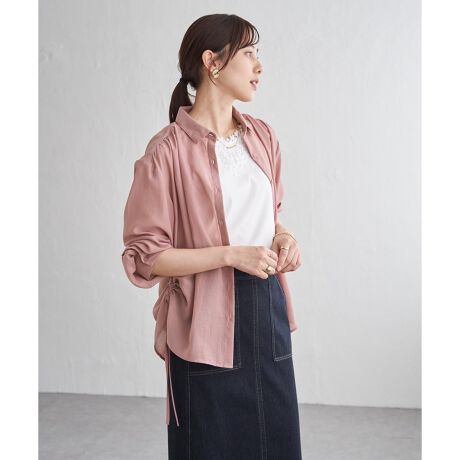 サテン/ドビーサイドリボンシャツ