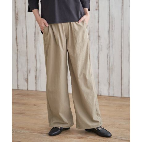 接触冷感と速乾機能を備えたドライタッチ素材で、暑い季節も快適に履けるチノベイカーパンツ。
