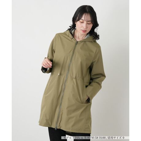 初夏の羽織りに重宝するフーデッドコートです。高めにレイアウトされたウエストのドローコードを絞れば、シルエットを自在に調節してスタイルアップを狙えます。フロントはダブルジップ仕様で開きの調整が可能。フードの内側からのぞくストライプ柄の裏地が、バックスタイルに爽やかなニュアンスを加えます。左右にポケットをレイアウトし、機能性もしっかりと確保。裏地付きながら軽やかな着心地で、季節の変わり目のお出かけを快適に彩ります。