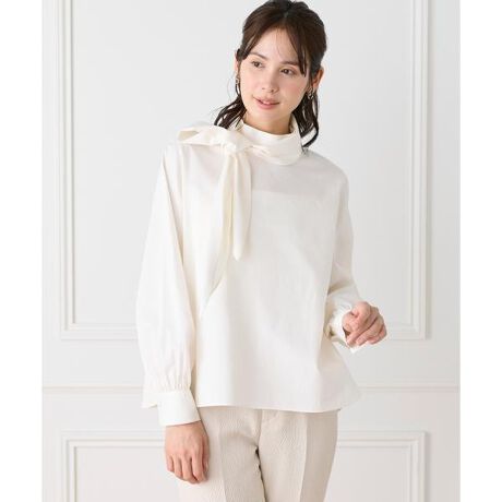 ■デザインボウタイとハイネックを組み合わせたブラウス。ボウタイはシーンに合わせてアレンジができ、着こなしの幅が広がります。体のラインを拾わない程よいリラックスシルエットに、デニム素材でほどよいカジュアル感をプラスした一枚です。■素材デニムライクな表情が魅力のコットンツイル素材。先染めデニムのような表面感を再現しつつ、インディゴ染料を使用していないため色落ちしにくく、美しいカラーを長くキープします。毛羽の少ない糸を使用することで、上品な光沢となめらかな肌触りを実現し、きれい見えする大人のデニムに仕上げました。・水洗い可・ボウタイ取り外し可・後ろボタンあり■サンプル撮影商品画像の商品はサンプルです。実際の商品とはサイズや色味、素材、デザイン等の仕様が若干変更になる場合がございます。■カラーについては、可能な限り実際の商品に近いカラーで撮影をおこなっておりますが、照明の関係により実際の製品とは色味が違って見える場合があります。またパソコン・スマートフォンなどの環境により、若干製品と画像のカラーが異なる場合もございます。現物と画像のカラー差異については返品理由となりませんので、予めご了承ください。■サイズ表記はあくまで目安となります。