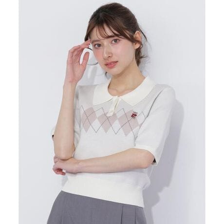 <BEARシリーズ>ポロ襟アーガイルニット