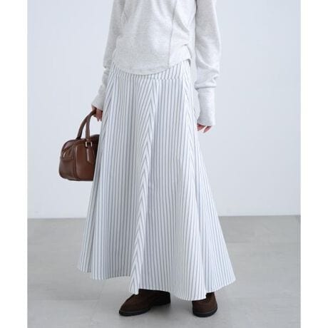 ナチュラルな風合いのコットン素材を使用したフレアスカート。パネルハギで分量をもたせたフレアシルエットが、軽やかに揺れて女性らしい印象を演出します。ウエストはヨーク切り替えですっきりと仕上げたシルエット。程よいハリ感のあるコットン素材で甘くなりすぎず、ロングシーズン着回せます。コンパクトなトップス合わせでメリハリを付けたり、シアーやショート丈トップスでトレンド感を出すのも◎。オーバーサイズのスウェットやニットでラフなカジュアルスタイルにも着こなます。足元はフラットやバレエシューズでナチュラルに、ブーツでカジュアルダウンも楽しめます。※モデルの着用画像の場合、光の当たり具合により、実際の色味と異なって見えることがございます。色味は、商品単体の画像をご参照ください。