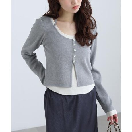秋冬に好評だったキャミレイヤードクルーカーディガンを春素材にアップデート!ドライタッチ素材にさりげないラメ糸を効かせています。配色が楽しめるニットカーディガンにキャミソールをドッキングしたレイヤードアイテム。袖口と裾からさりげなく配色インナーがのぞくデザインです。カーディガンは総針編みで型崩れしにくく、インナーはリブ編みで同じ糸でも表情に変化をプラス。深めの襟ぐりでも安心して着られ、デコルテをキレイに見せてくれます。デニムパンツ合わせでカジュアルにも、スカート合わせでフェミニンにも着回せます。※モデルの着用画像の場合、光の当たり具合により、実際の色味と異なって見えることがございます。色味は、商品単体の画像をご参照ください。