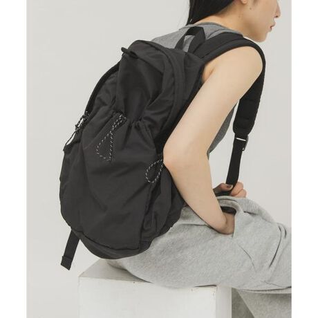 大きなアウトポケットが特徴的なナイロンバックパック。小ぶりのサイズ感に仕上げ、テープやドローコードなどパーツの配色にこだわりました。お気に入りのキーホルダーやカラビナを付けても可愛いです。