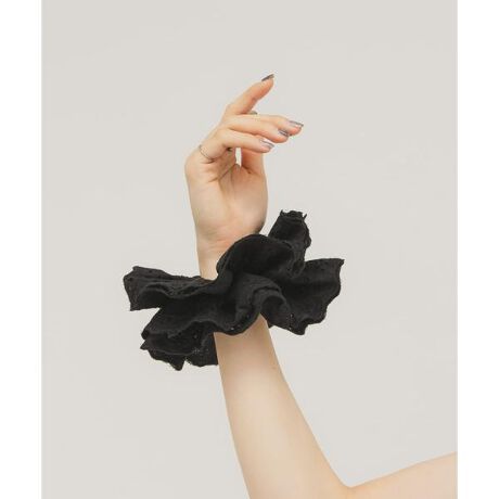 程よい存在感のレースシュシュが登場。さっとまとめた髪に付けるだけでトレンド感がアップします。ヘアアクセとしてはもちろん、腕につけても可愛いです。