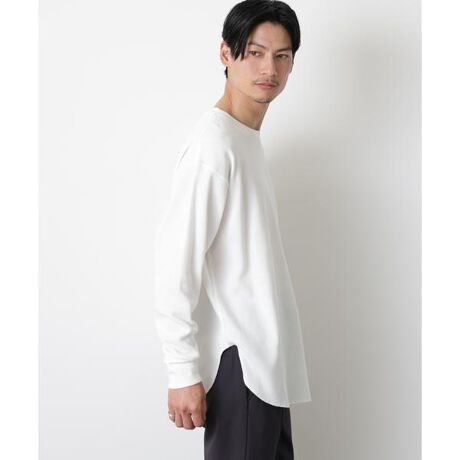 ブルゾンやシャツのインナースタイリングから、春から初夏の一枚着まで活躍するミニワッフルのカットソー。しなやかで柔らかな素材感に加え、シワになりにくいイージーケア仕様も魅力のポイント。着回しやすいシンプルなデザインで、ワードローブの定番として重宝する一枚です。
