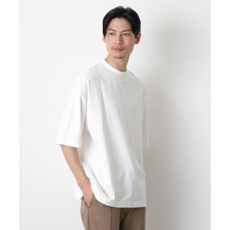 首に沿うようなモックネックに、ボリュームのあるシルエットが特徴のTシャツ。裾巾はドローコードで調整可能となっており、着こなしも楽しめるデザイン。インナーとしてはもちろん、トップスとしても様になる一着です。