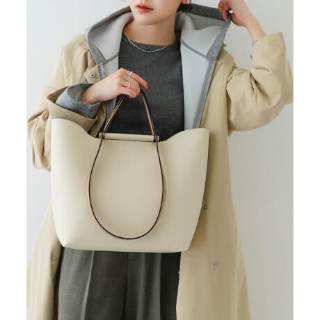 柔らかな曲線を描く開口部のカッティングが、上品な印象のトートバッグ。