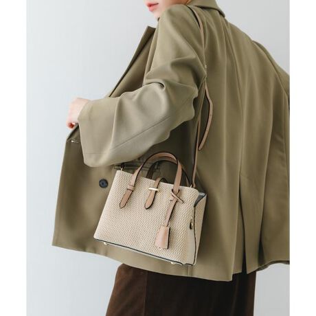 季節感のある涼しげな雑材風のメッシュ素材と、滑らかな質感を組み合わせたデザイン。落ち着いた配色のバイカラーデザインが、コーディネートを都会的な印象に引き締めてくれます。