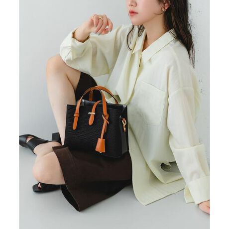 季節感のある涼しげな雑材風のメッシュ素材と、滑らかな質感を組み合わせたデザイン。落ち着いた配色のバイカラーデザインが、コーディネートを都会的な印象に引き締めてくれます。