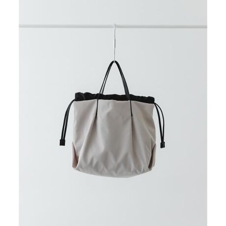 ドローストリング仕様で、絞り具合によってバッグのシルエットを自由に変えられます。細めのハンドルが繊細な印象をプラスし、カジュアルすぎない絶妙なバランスを保っています。