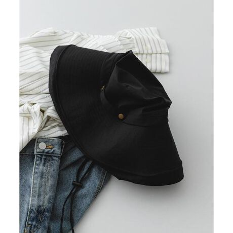 使わない時はくるっと畳んでバッグに収納が可能。顔周りをしっかりカバーする広めのつばが、夏のお出かけに安心感を添えてくれます。サイドにあしらわれたゴールドのボタンが、カジュアルな中に上品な輝きをプラス。