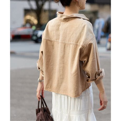 人気のライトオンスデニムクロップドシャツ。今シーズンはベージュが新色として登場。