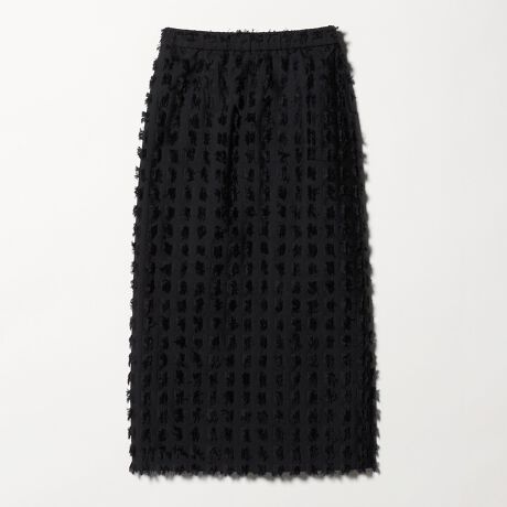 大きめなスクエアのカットジャガードで表現したフリンジが印象的なスカート。