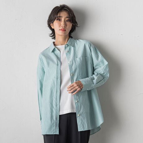 ドレーピーなブロード素材を使用したオーバーサイズシャツ。