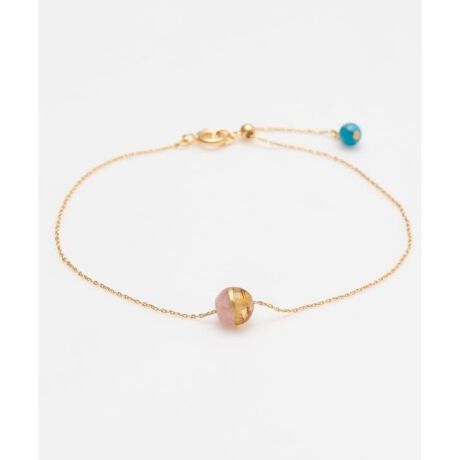 [型番:2SWZ6103-2026]日本神話に登場する夫婦の神、瓊瓊杵尊(ににぎのみこと)と木花咲耶姫(このはなさくやひめ)をイメージしたブレスレットです。黄金色に輝くシトリンは実りと繁栄をもたらすニニギノミコトを、優しいピンクのインカローズは愛と美しさを象徴するコノハナを表現。ふたりの神の結びつきを思わせる配色に、金継ぎを思わせるデザインを加え、調和と絆の美しさを表しました。スライドチェーンでサイズ調整が可能です。