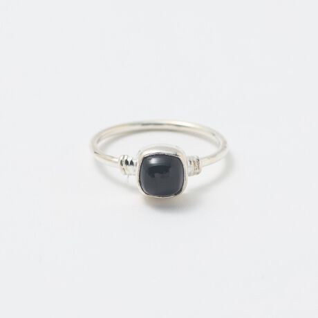 細いリングに立体的に配したストーンが目を惹くシルバーリング。