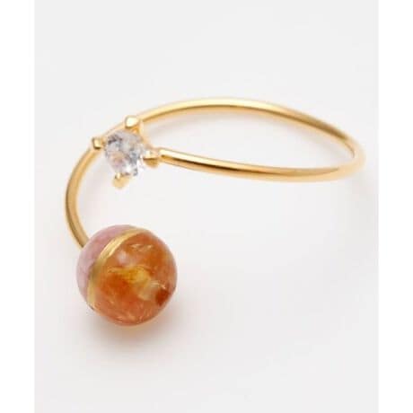 [型番:2SWZ6115-2026]日本神話に登場する夫婦の神、瓊瓊杵尊(ににぎのみこと)と木花咲耶姫(このはなさくやひめ)をイメージしたリングです。黄金色に輝くシトリンは実りと繁栄をもたらすニニギノミコトを、優しいピンクのインカローズは愛と美しさを象徴するコノハナを表現。ふたりの神の結びつきを思わせる配色に、金継ぎを思わせるデザインを加え、調和と絆の美しさを表しました。幸福と豊かさをそっと導くリングです。