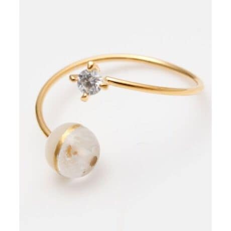 [型番:2SWZ6113-2026]日本神話に登場する夫婦の神、伊邪那岐命(いざなぎのみこと)と伊邪那美命(いざなみのみこと)をイメージしたリングです。透明なクリスタルは清らかなイザナギを、優しい光を放つマザーオブパールは包み込むようなイザナミを表現。金継ぎを思わせるデザインが、絆や調和を象徴します。夫婦円満や良縁を願うお守りとしてもおすすめです。