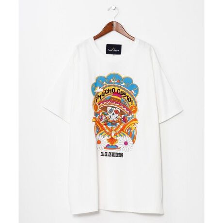 [型番:JSU-6101-2026]【Amina×grn】死者の日(Dia de los Muertos)をテーマにした刺しゅう×プリントTシャツ。古着風プリントにヒッピーアートを重ねたデザインが目を惹く。しっかりとした素材感で型崩れしにくく、ゆったりとしたユニセックス仕様も魅力。抗菌防臭加工