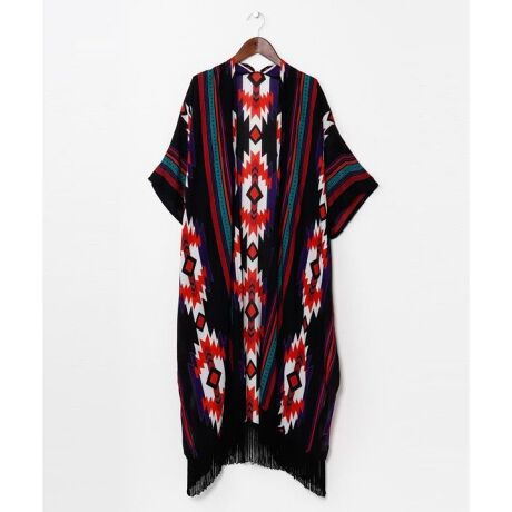 [型番:IAC-6116-2026]薄手レーヨン素材で涼しく着られるカーディガン。嬉しいUVカット加工付き。メキシコのチマヨ柄とサラペの色使いでメキシカンムード満点。フリンジ裾がアクセント。UVカット加工。