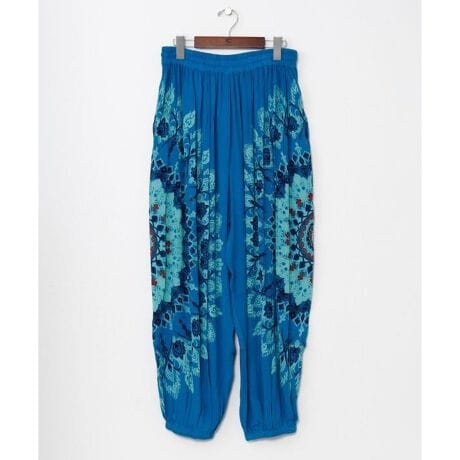 [型番:IAC-6119-2026]大胆なマンダラ柄が印象的なアラジンパンツ。リゾート気分を演出するゆったりシルエットとレーヨンクレープ素材の落ち感が魅力。