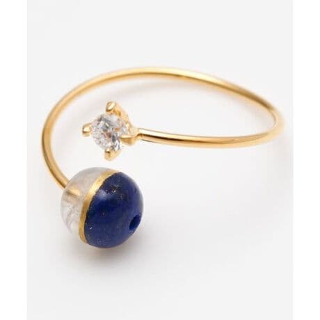 [型番:2SWZ6118-2026]月の神・月読命(つくよみのみこと)と、海と嵐の神・須佐之男命(すさのおのみこと)をイメージしたリングです。穏やかな輝きを放つレインボームーンストーンは静けさと調和を司るツクヨミを、深い青のラピスラズリは力強さと勇気を象徴するスサノオを表現。兄弟神の結びつきを、金継ぎを思わせるデザインで品よく仕上げました。