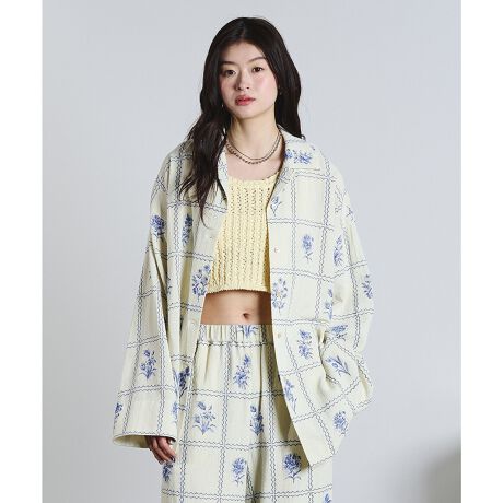 繊細なフラワー刺繍が心くすぐる、オーバーシャツ
