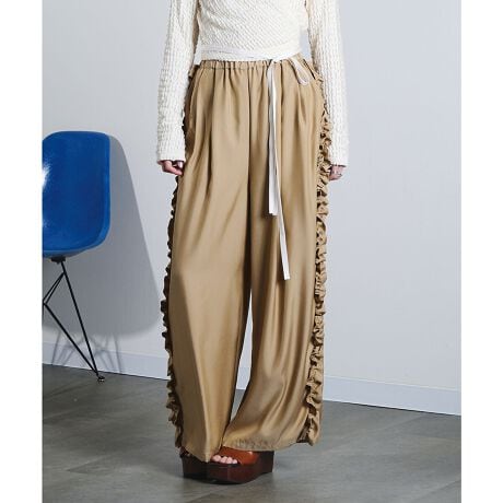 サイドのフリルが効いていて、甘さを足しつつも大人っぽく仕上がるパンツです。