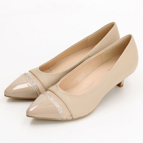 ポインテッドトゥ素材コンビパンプス