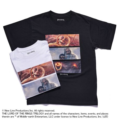 世界的ベストセラーである「指輪物語」を映画化した傑作ファンタジー『ロード・オブ・ザ・リング』。ゴラム、サルマン、サウロンの目がデザインされたTシャツです。